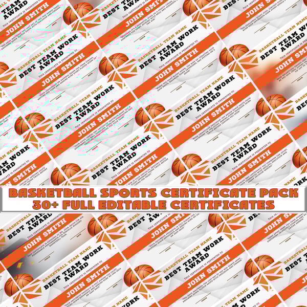 Basketball Certificate Canva Templates Pack | 30+ Editable Sports Award Certificates | Digital Download