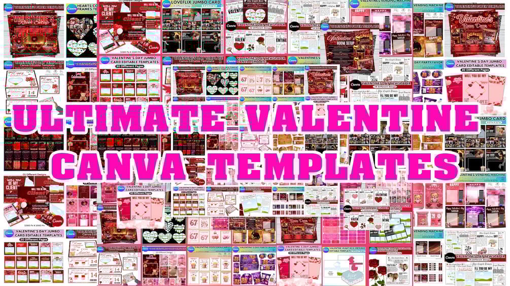 Ultimate Valentine Canva Template Mega Bundle | Editable Party Printables, Jumbo Cards, Treat Boxes, Flyers & much More