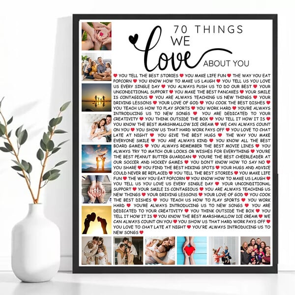 Editable ā70 Things We Love About Youā Canva template. Perfect Valentineās Day, anniversary, or birthday gift. Instant download.5.0(7)