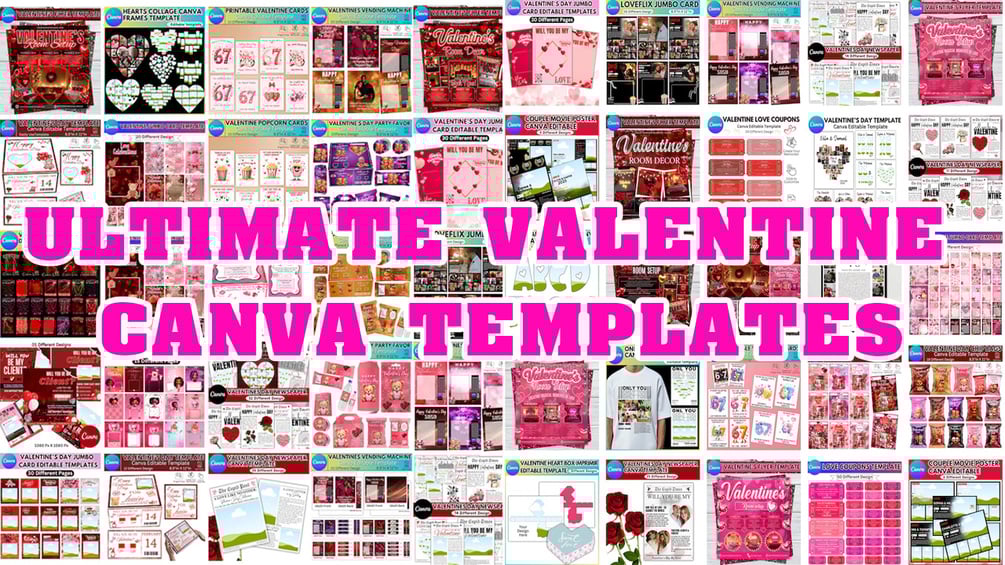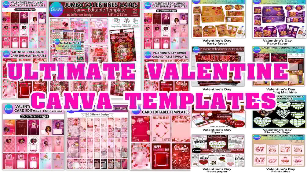 Ultimate Valentine Canva Template Mega Bundle | Editable Party Printables, Jumbo Cards, Treat Boxes, Flyers & much More
