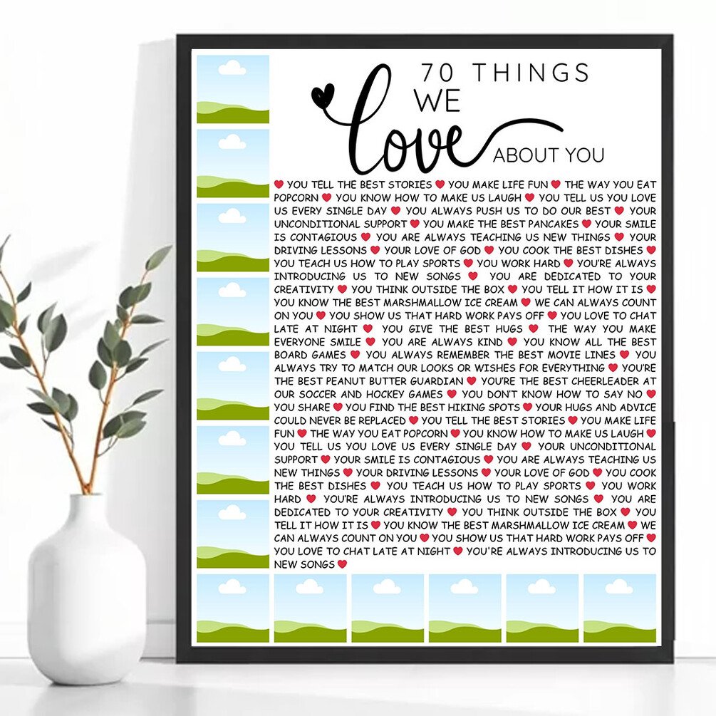 Create a heartfelt and meaningful gift with this “70 Things We Love About You” Canva Template 💕